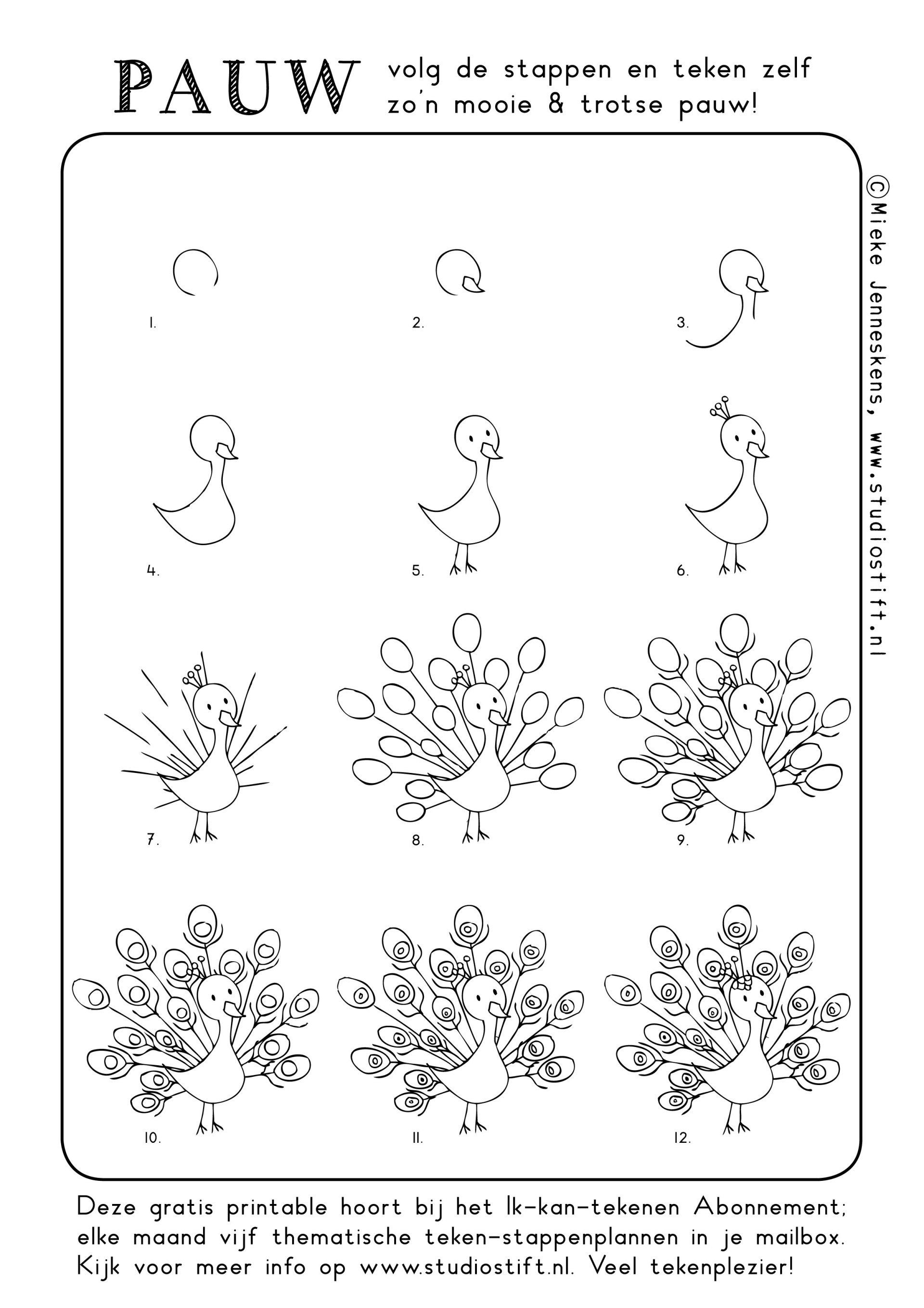 Teken stap voor stap een pauw
